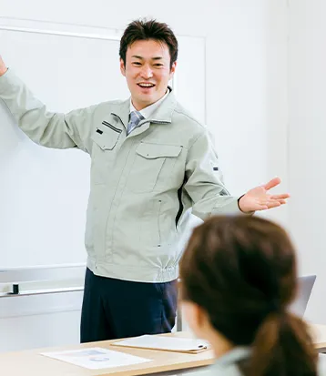 ヤマムラのOJT研修では、所長やベテラン社員のもとで実際に働きながら学びます。現場の規模に応じて指導体制が変わり、より実践的なスキルを習得できます。職人との距離が近いのがヤマムラの特徴。現場の知識や技術を直接学べる環境が整っています。